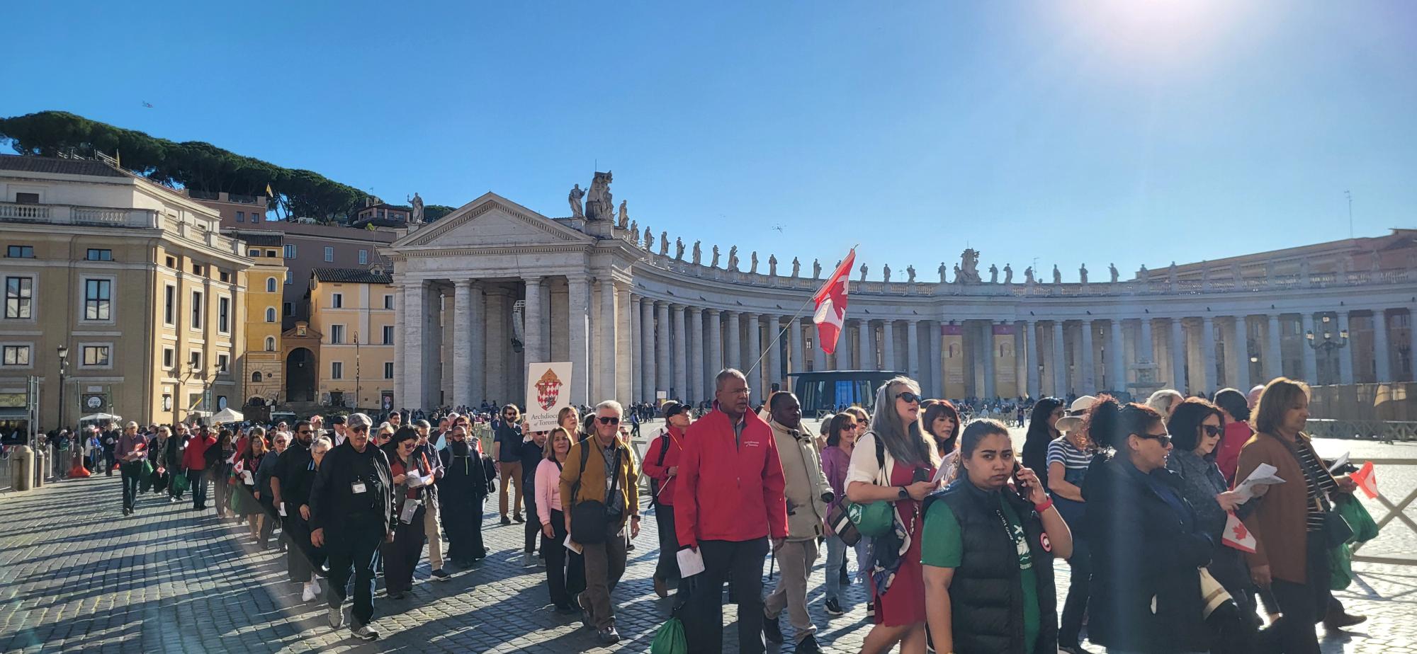 More than 100 pilgrims representing dozens of parishes throughout the Archdiocese of Toronto have traveled to Rome for a Jubilee Year Pilgrimage, November 10-17, under the leadership and spiritual direction of Cardinal Frank Leo and Archdiocesan Year of Jubilee Chair, Fr. Tim Hanley. The pilgrims will pass through the Holy Door at Rome’s four major basilicas: St. Peter’s, St. Mary Major, St. John Lateran and St. Paul Outside the Walls. The group also attended the Wednesday audience with Pope Leo XIV, will travel to Assisi and participate in the Mass to be celebrated by Pope Leo for the Jubilee of the Poor.